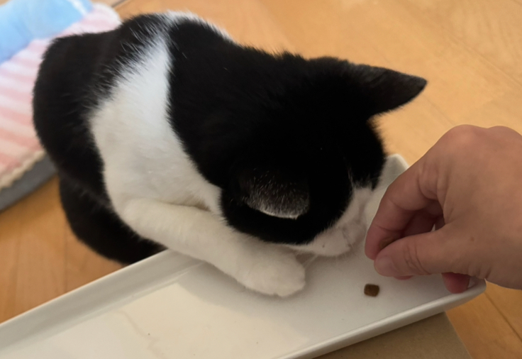 シンバは、ふやかしていないドライフードを食べても良い頃ですが、カリカリにはあまり興味がないようで、ふやかしたものを好んで食べています。シンバも、いつか自分のペースでカリカリを食べる日が来たら嬉しいです。