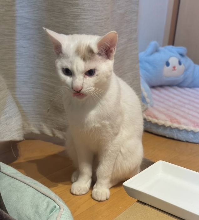シンバとアテネの部屋にあるもののほとんどは、先住猫たちが使い古したものばかりです。トイレやベッドも、シンバとアテネが先住猫たちの匂いに少しでも慣れてくれればという思いで用意しました。おかげさまで二匹はすぐに慣れてくれて、毎日楽しそうに過ごし、好きな寝床も見つけて、今ではすっかり二匹の部屋になっています。