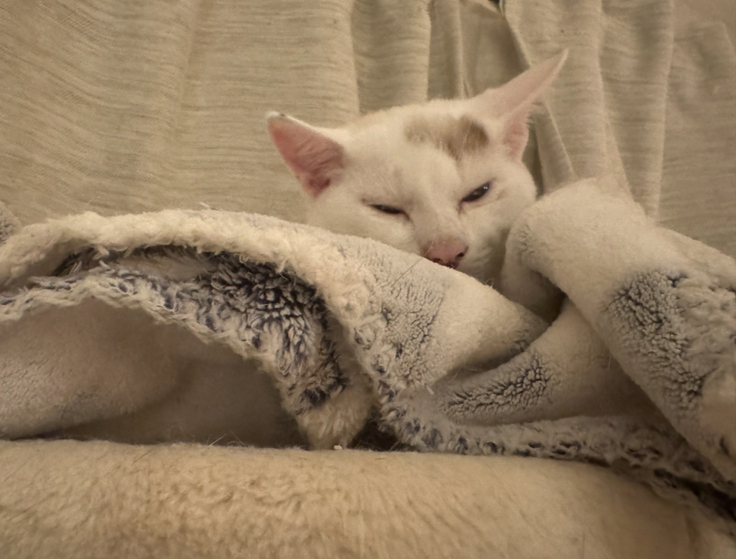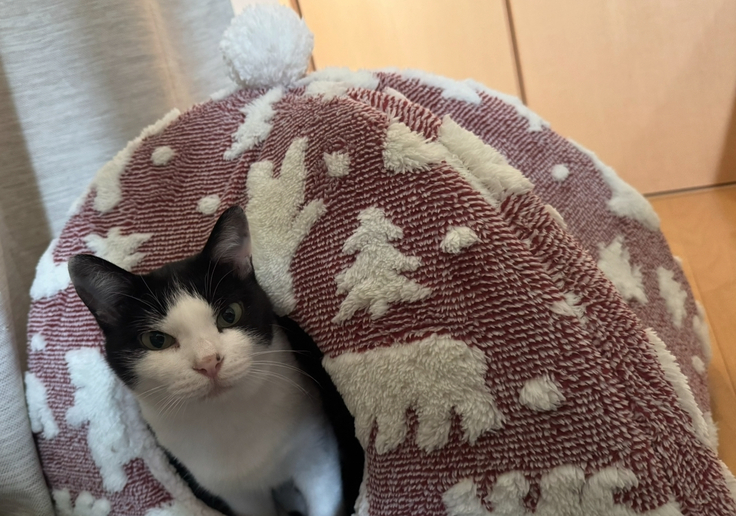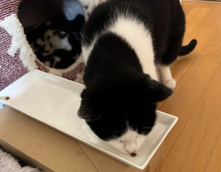アッシュが少しずつ慣れてくれるのに合わせて、焦らず進めていきます。アッシュがリラックスしてふたりと過ごせるようになったら、次は長男猫との慣らしを始めたいと思います。