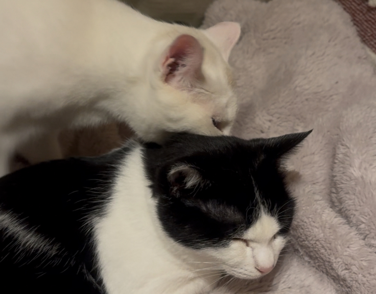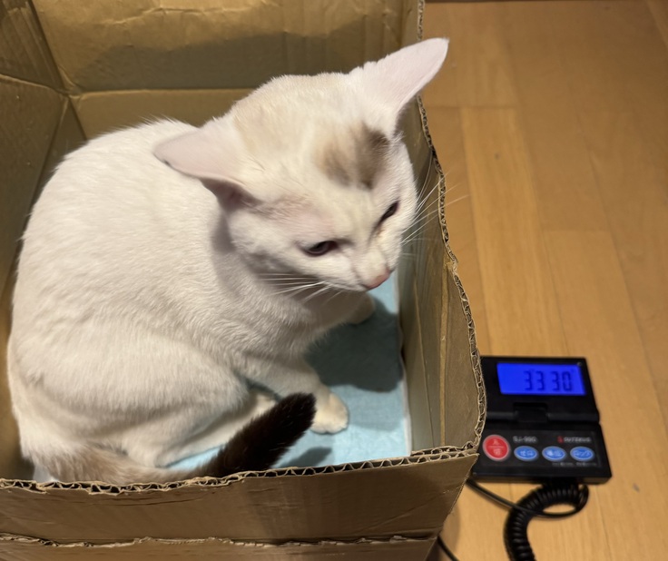 シンバがアテネの体重を追い越すかと思いきや、アテネも新しいフードへの切り替えが無事に終わり、早食いによる吐き戻しもなくなったことで少しふっくらしてきました。とはいえ、もともと痩せ気味だったので、今がちょうど良い体型かもしれません。