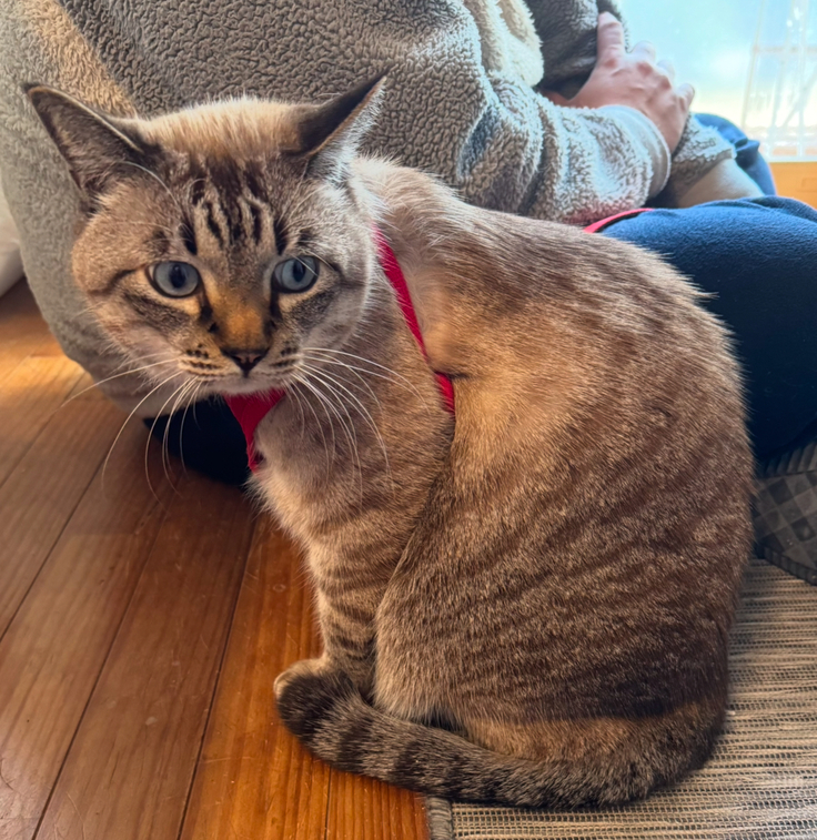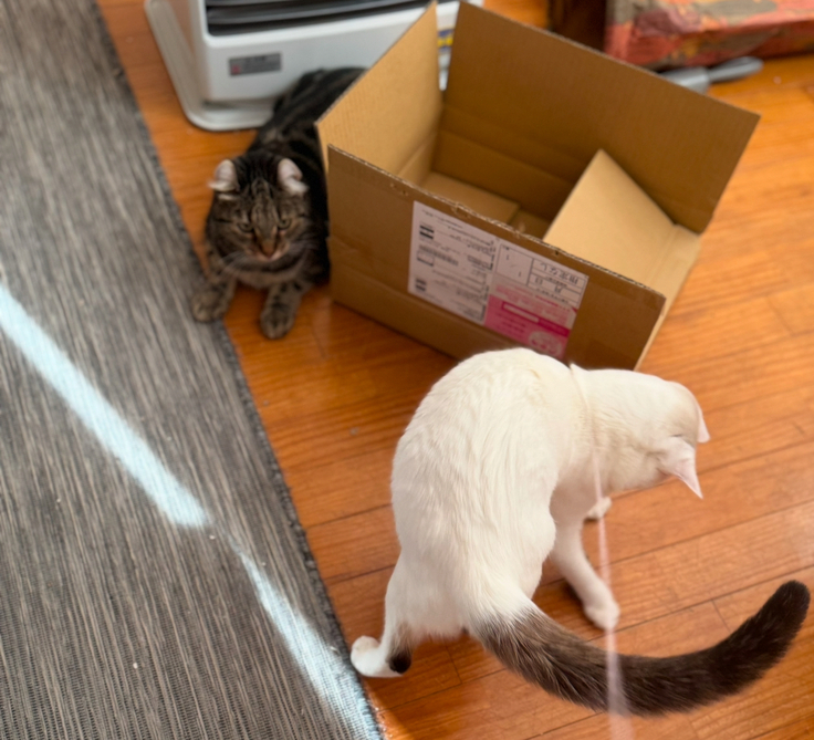 アテネも元気です!冬で暖かい毛布の上で過ごすことが多くカロリー消費量が減っているのか、体重が少しずつ増えています。ご飯の量は袋に記載された量より少し控えめにしていますが、それでも増えている状態です。今は少しふっくらしてちょうど良いと思っていますが、このまま増え続けるのは健康に良くないかもしれません。適量を見つけるのは難しいですね。