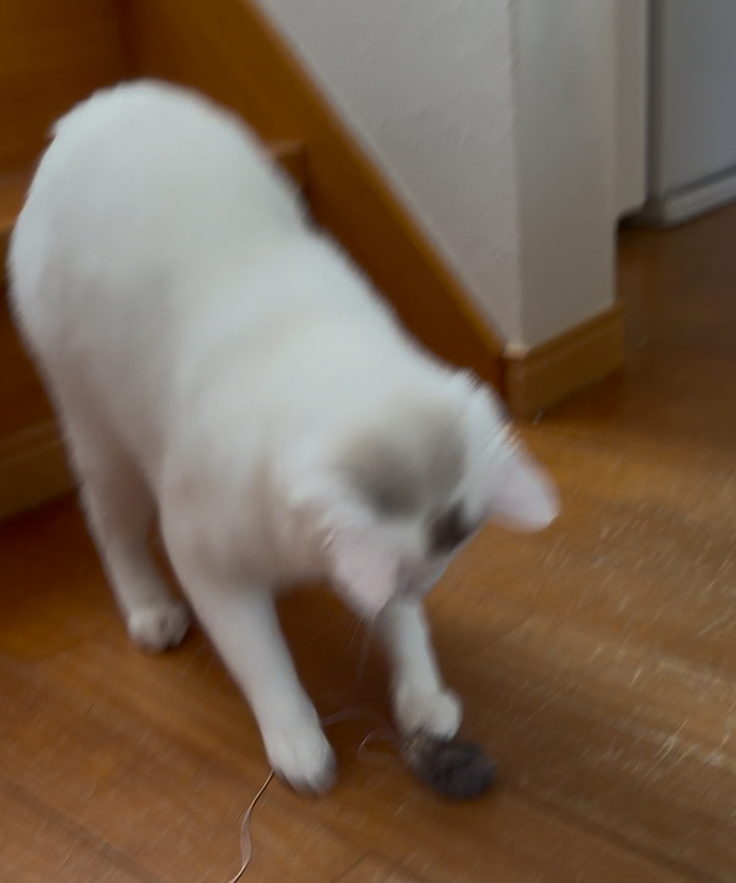 一方、シンバは楽しそうに走り回り、ネズミのオモチャで遊んだり、アッシュやスモーキーを気にせずマイペースで過ごしていました。ご飯もいつも通り完食です!