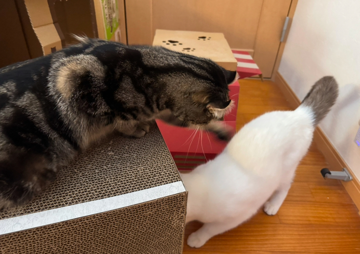 シンバもアテネも部屋から出てくると、楽しそうに遊んでいます!