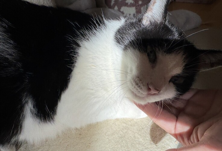 アテネはご飯よりも撫でられることが好きで、今ではご飯前に必ずヨシヨシタイムがあります。できるだけ長く撫でてあげるようにしており、ゆっくりすると20分でも大丈夫で、手を止めるとすぐに催促してきます。
