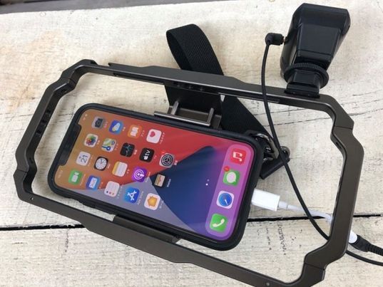 写真のスマホは、実際に今回の撮影に使用していたものです。