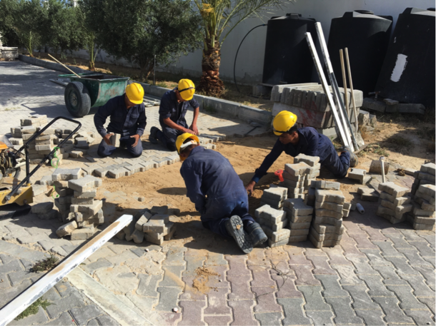 メンバーの一部は、すでに事前準備としてガザを訪問し、起業家たちの萌芽を見ています。例えば「ハンユニス職業訓練学校」、ここでは、15歳〜20歳の生徒たちが、家具作りや道路のタイル張替、ブロック作りなど、直ぐにでも使える技術を学んでいます。