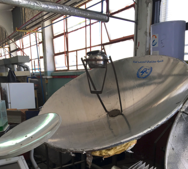 そんな中、「あっ!」と驚くようなアイデアに目が止まりました。彼らは「加熱器」を作っていたのですが、なんと廃パラボラアンテナを活用し、日光の焦点距離にやかんを置くという方法で、4リットルの水を1分で沸騰させていました。