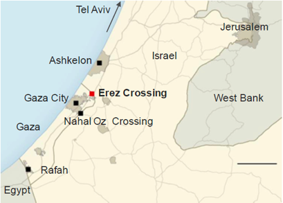 ガザ地区との出入口は、北部のErez、中部のNahal Oz、エジプトと国境を接するRafahの3カ所に限られますが、更にNahal Ozは燃料、ガスなどのガザへの輸送用、Rafahはエジプトで2013年にムスリム同胞団出身のムルシ大統領が失脚して以来、同様にムスリム同胞団を支持母体とするハマスが支配するガザ地区との国境は閉ざされてしまいました。従い、2016年現在、機能を果たしているのはErezのみ。