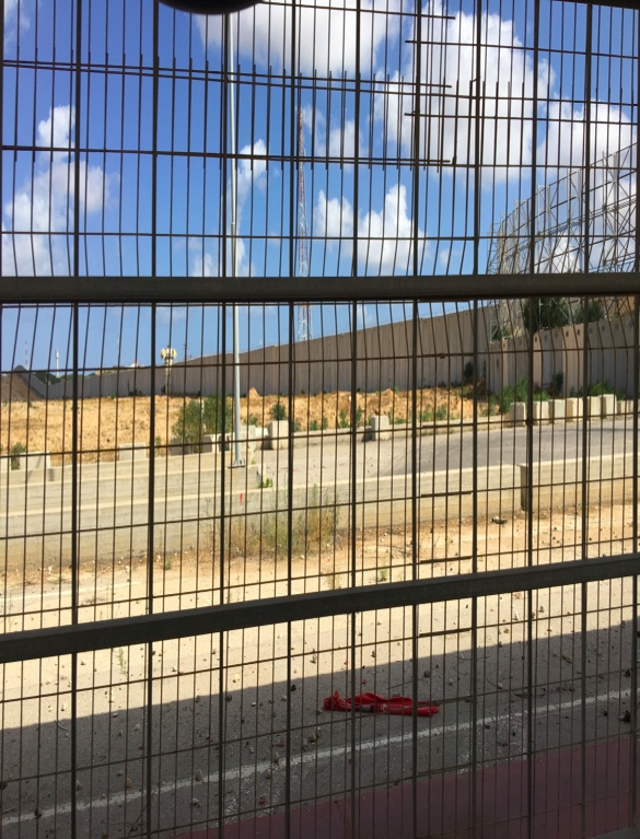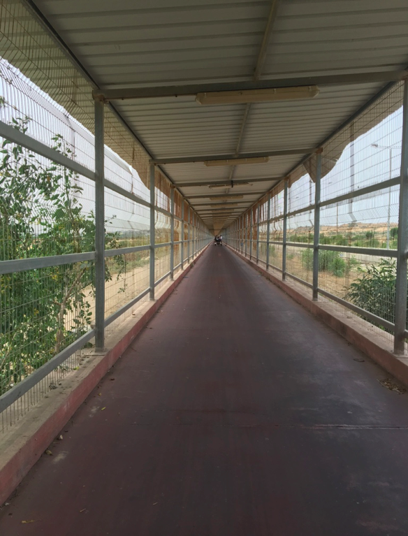 検問所を抜けるとさぁガザだ!と思うとまだまだ道のりは続きます。今度は約1kmに亘る鉄フェンスの回廊。
