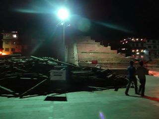 この寺では何名が亡くなった、ここから見えていた大きな寺が消えた、ここは外見はあまり変わらないが中が崩壊した。二人が歩きながら解説してくれる。暗くなるとあちこちでロウソクが焚かれ、いつもの宗教行事か特別なものなのか区別がつかない。