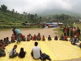 (5月に行われたネパール山間部でのワークショップの\様子)