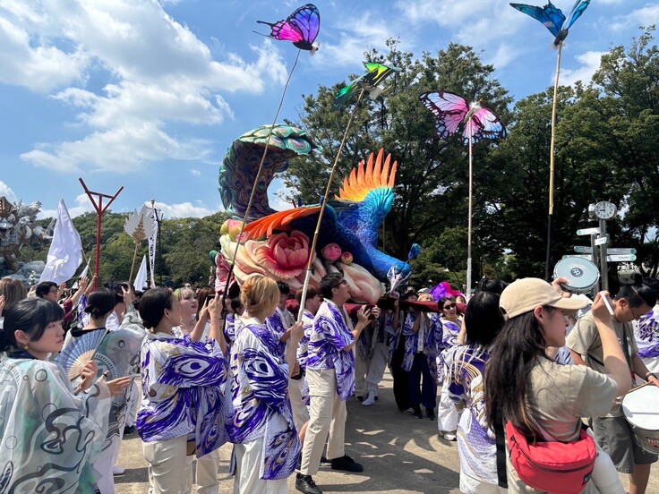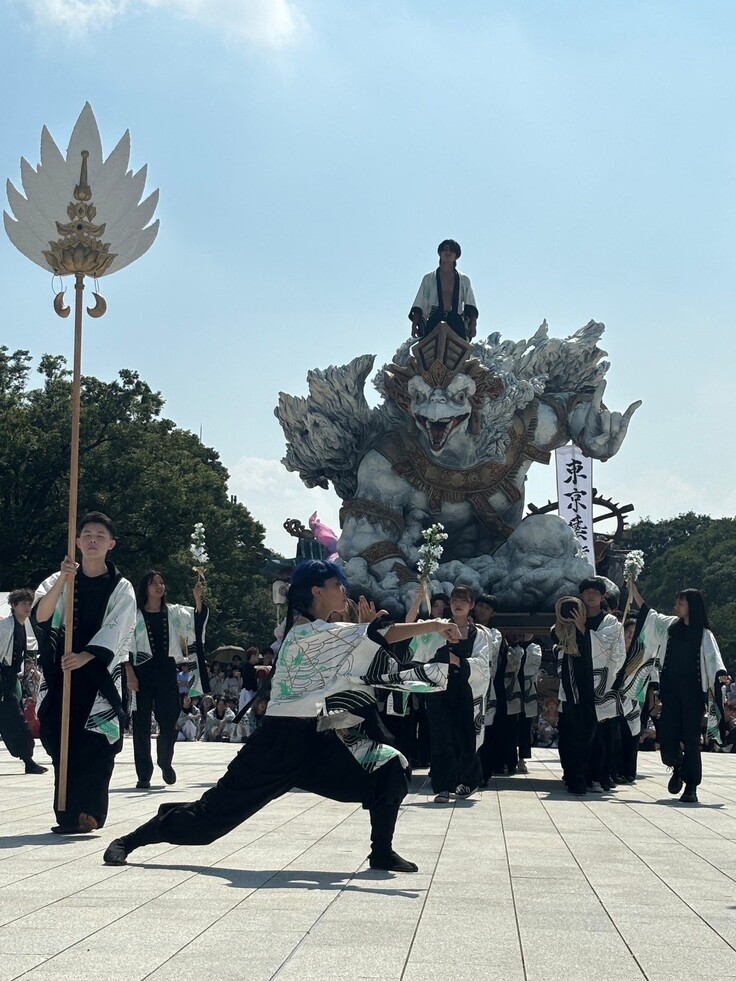 当日は上野公園に獏・孔雀・閻魔大王・ガルーダの御輿4基が一堂に会し、各隊が迫力あるパフォーマンスで観客を魅了しました。