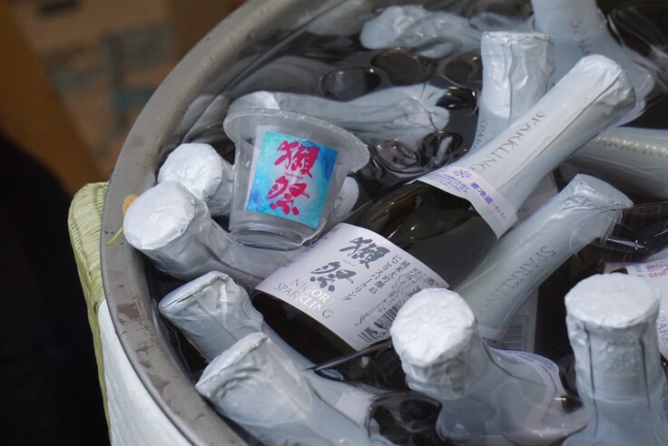 焼酎『獺祭』の販売は、藝大生からデザインを公募して作成したラベル付きカップで提供され、模擬店の目玉商品となりました。