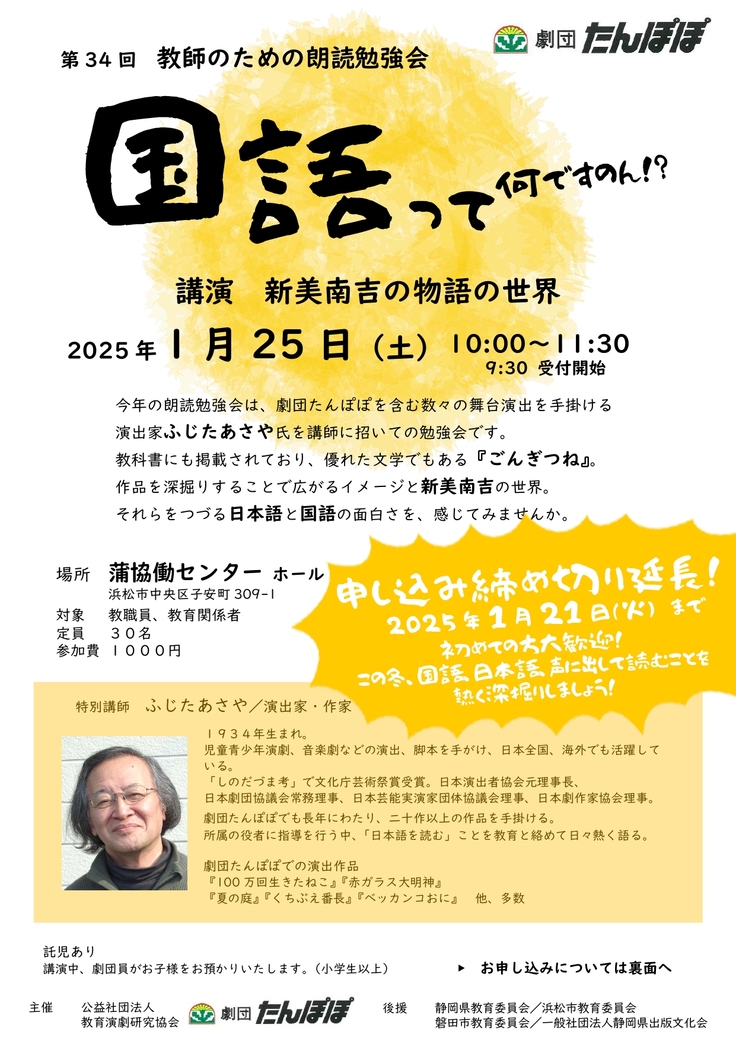 第34回 教師のための朗読勉強会 講演「新美南吉の物語の世界」(2025年1月25日開催)