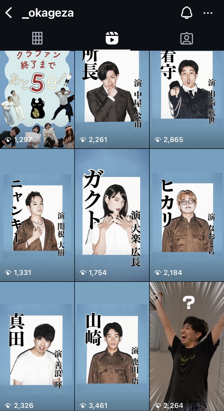 インスタグラムには、劇団おかげ座広報部のスペシャリストたちによる、超豪華な動画投稿がもりだくさん…!!