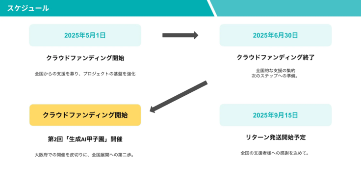 - 2025年5月9日(金):クラウドファンディング開始 全国からの支援を募り、プロジェクトの基盤を強化。