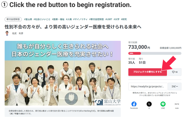 ※寄付金領収書は2025年9月末までに送付します。なお、領収書の日付は、READYFORから富山大学に入金のある2025年8月8日(金)になります。