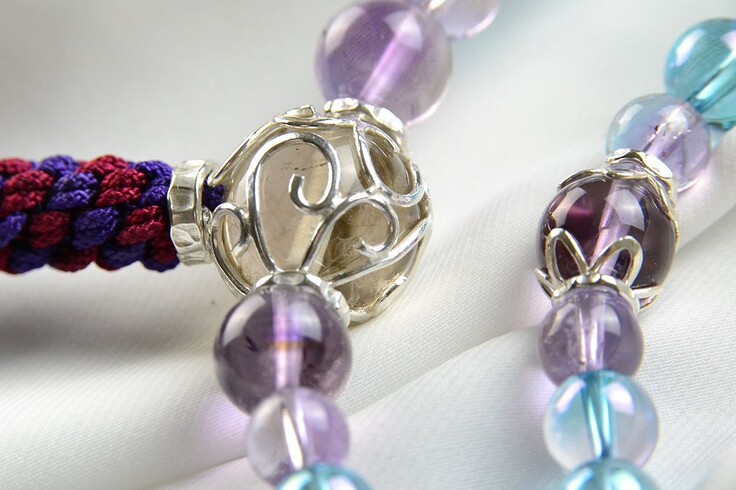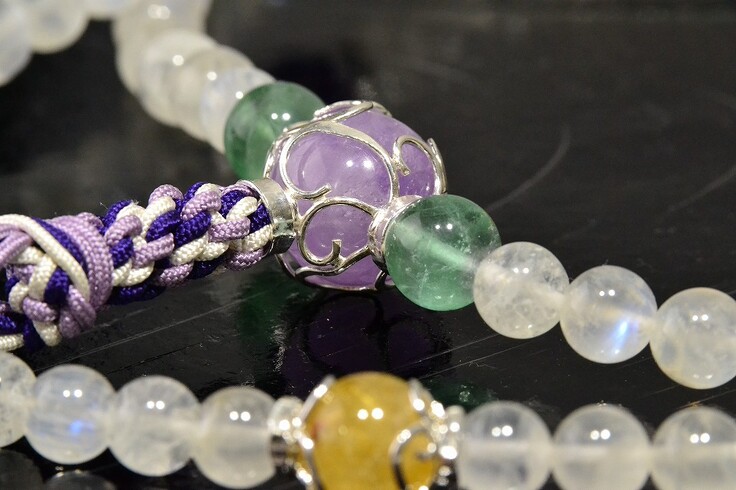 華念珠・華数珠は、その無添加の純銀と美しい半貴石を組み合わせた作品です。