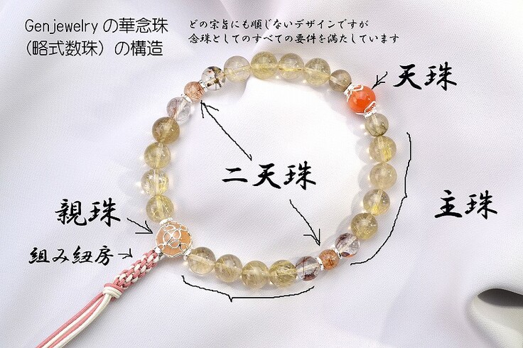 ・GenJewelryの華数珠・華念珠は、構造的に分割設計となっていて、伝統数珠のような、全部組み直しによる修理をする必要がありません。
