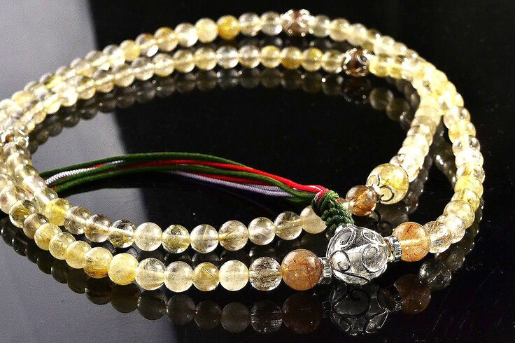 ▼番外の例1・ゴールドルチルクォーツの華念珠 20万円程度の作品