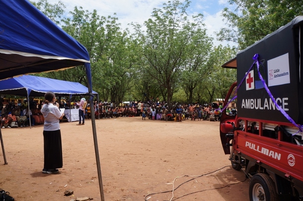 「日本のみなさんからオロボンのコミュニティにオート三輪救急車を寄贈していただき、私は幸せです。コミュニティには車がないので、特に夜中のクリニックへの緊急搬送がとても困難でした。これからはオート三輪でクリニックに行って出産できるので安心です。」