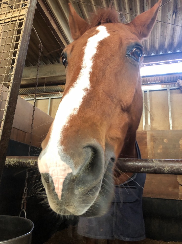 最初は警戒心が強かったのですが、最近は馬房の前で名前を何回か呼ぶと寄って来てくれるようになりました!
