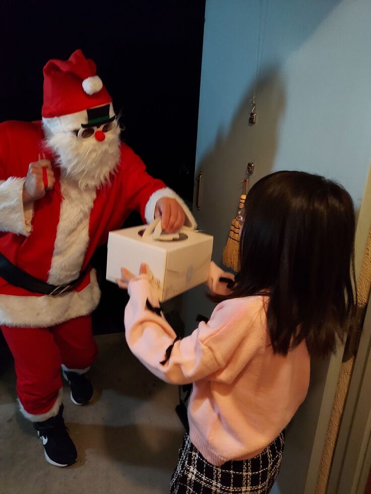 「メリークリスマス!」の声とともにケーキとプレゼントを手渡して“心に残る体験”を届けます。