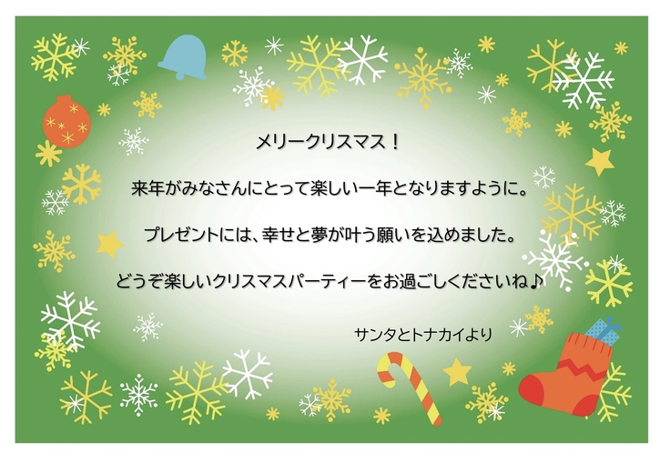 「応援しています!みんなが素敵なクリスマスを過ごせますように。」