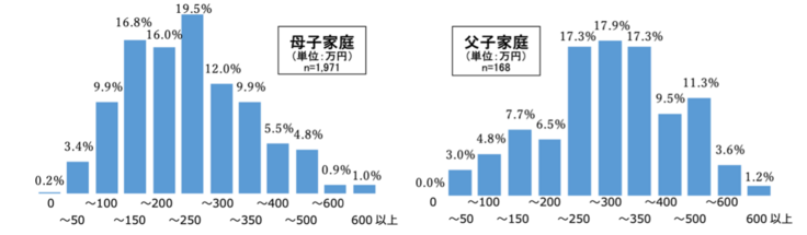 就労収入の現状(令和3年度高知県ひとり親家庭等実態調査より)