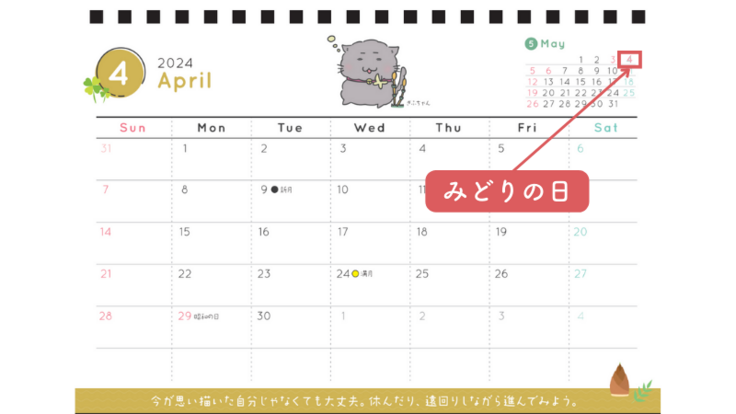 ↓ 4月:右上5月の4日が祝日