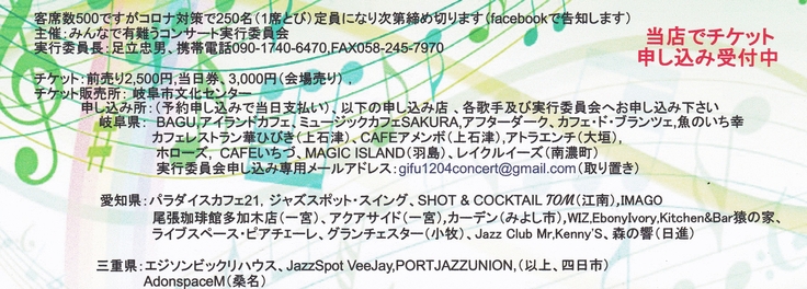 - 万が一コロナ第6波が発生して会場が閉館になった場合はコンサートが開催できません、そうなった場合、延期開催にする場合はお寄せいただいた募金はお返しませんが中止にする場合はお返ししますことをご了解ください