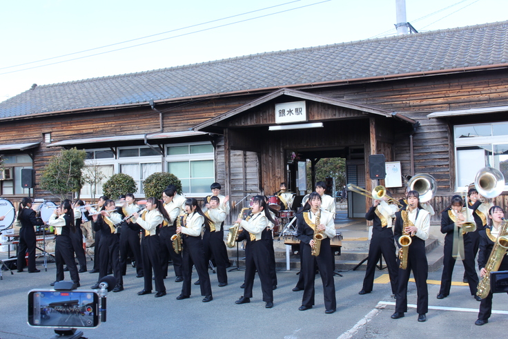 ↓落成式は、大牟田高等学校吹奏楽部の演奏から幕を開けました