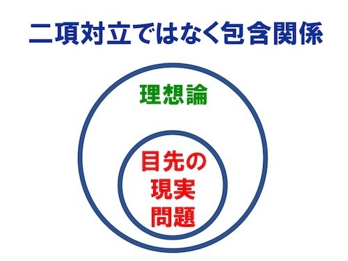 >>「すべての生きとし生けるものは幸せになるべき」というのは理想論ですが、これは、すべての人が(現実主義者も)目指すべき理想だと僕は思います。