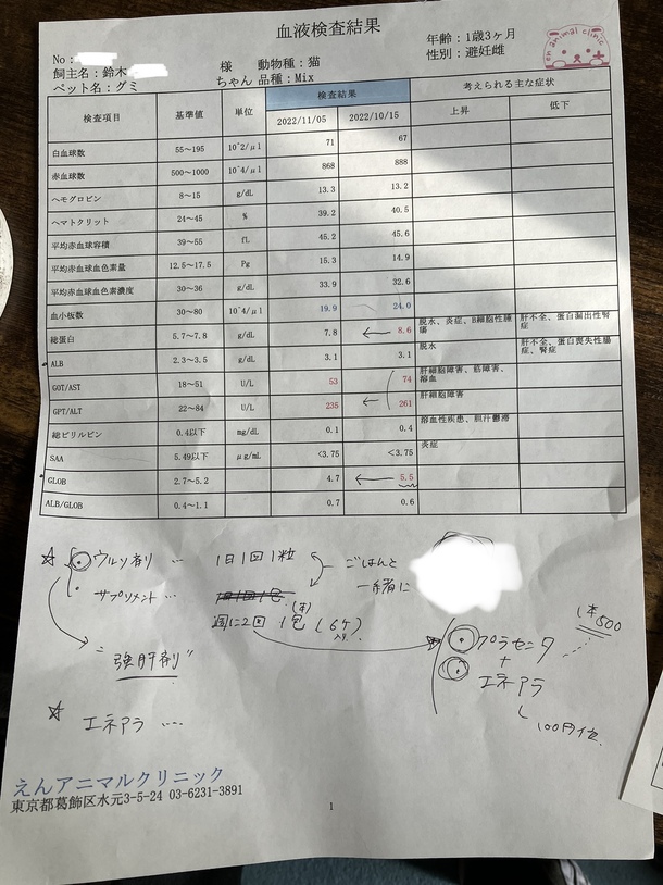 ただ、FIP投薬の影響で肝臓で代謝するため