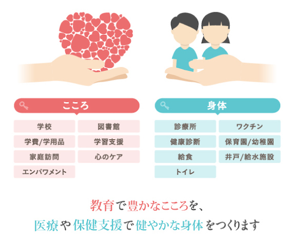 学校・図書館・学費/学用品・学習支援・家庭訪問・エンパワメント・心のケアなどに関わる支援
