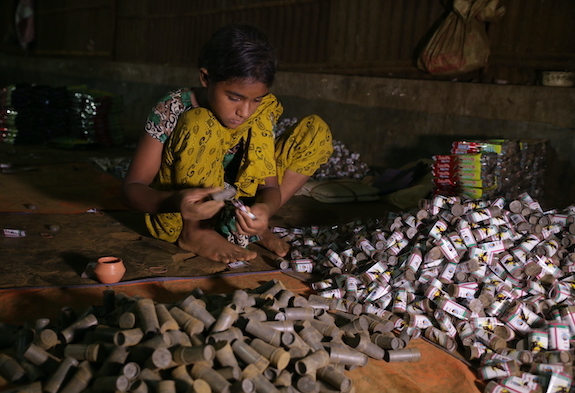 例えば、バングラデシュに住む12歳のミームちゃんは、首都ダッカのタバコ工場でお母さんと一緒に一日中、茶色の細かい粉でできたタバコを筒に詰める仕事をしていました。