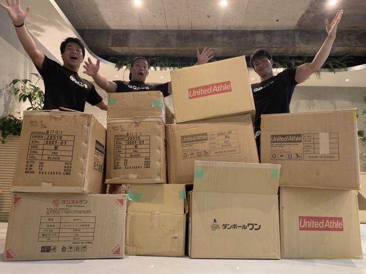 Tシャツ約800枚の梱包作業が完了し、発送作業中です。