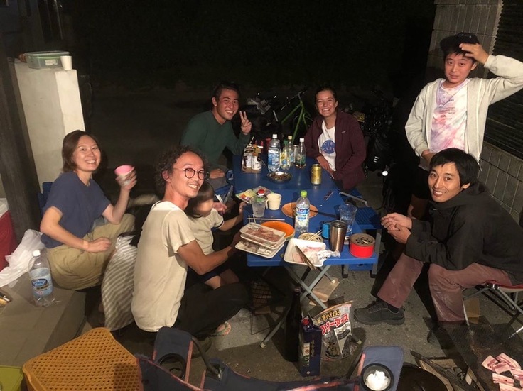 疲れた果てた僕らは、とりあえず洗濯だけはしようと近くにあったコインランドリーで洗濯をすることに。洗濯が完了するまで待っていた僕らに話しかけてくれたのが、人吉市で災害の復旧ボランティアをしていた男性でした。僕が今夜寝るとこも決まっていなく、鹿児島から自転車旅をしていてここにたどり着いたなどの経緯を話していたら、その隣で洗濯をしていた女性が声をかけてくれました。「もし泊まるとこがないなら、うちに泊まってきなよ。今ちょうどみんなバーベキューしている最中だし、ちょうどいいじゃん。」と。まさかこんな汚い格好をした旅人を家に泊めていただけるなんて、言われた時は本当にびっくりしました。