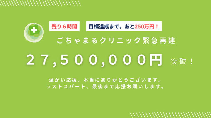 「ごちゃまるクリニック緊急再建」クラウドファンディング、2,750万円を突破しました!
