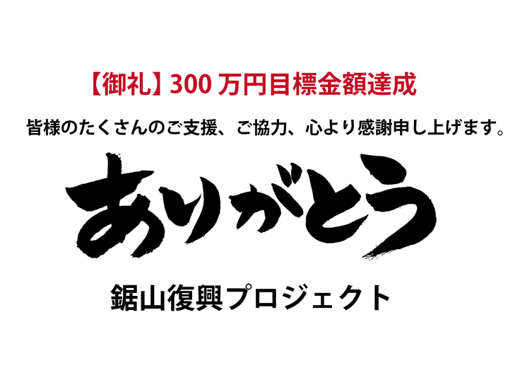 12月9日、設定の期限を前に、鋸山復興プロジェクト目標金額の300万円を達成することができました。ご支援下さったすべての皆さまに心より感謝申し上げます。