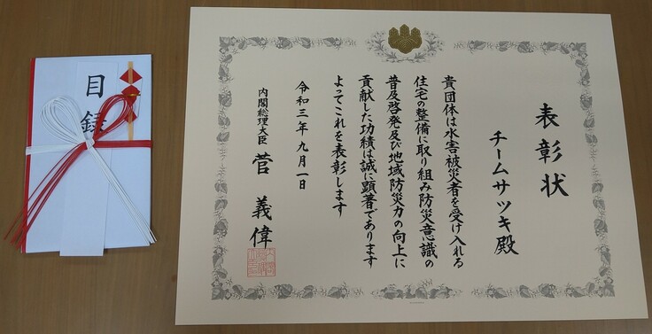 チームサツキが防災功労者内閣総理大臣賞を受賞しました!