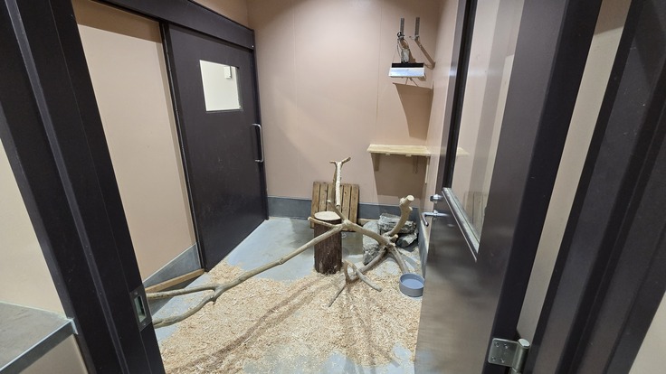 横にはカラカル(ジナ)の寝室があり、ゆくゆくはオスのカラカルと一緒に過ごせたらと考えております。