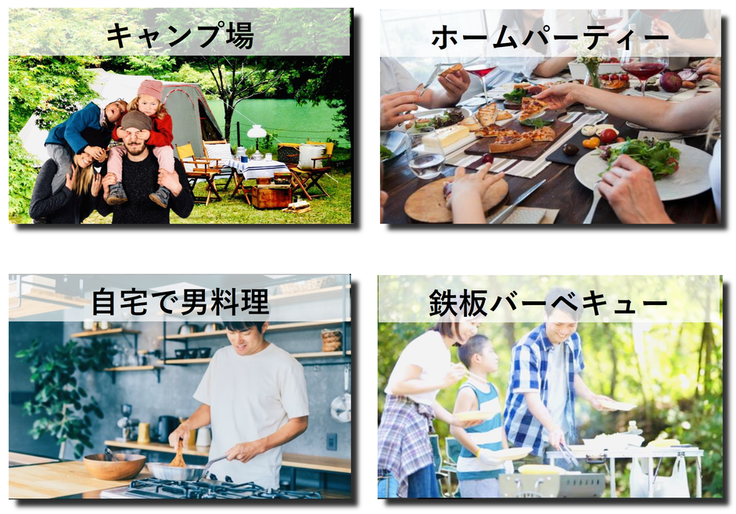 極厚鉄板は使う場所を選びません。キャンプ場、ホームパーティー、公園で鉄板バーベキュー、ご自宅で男料理。 『あなたならどこ使いますか?』 きっと男前な一日が過ごせますよ!
