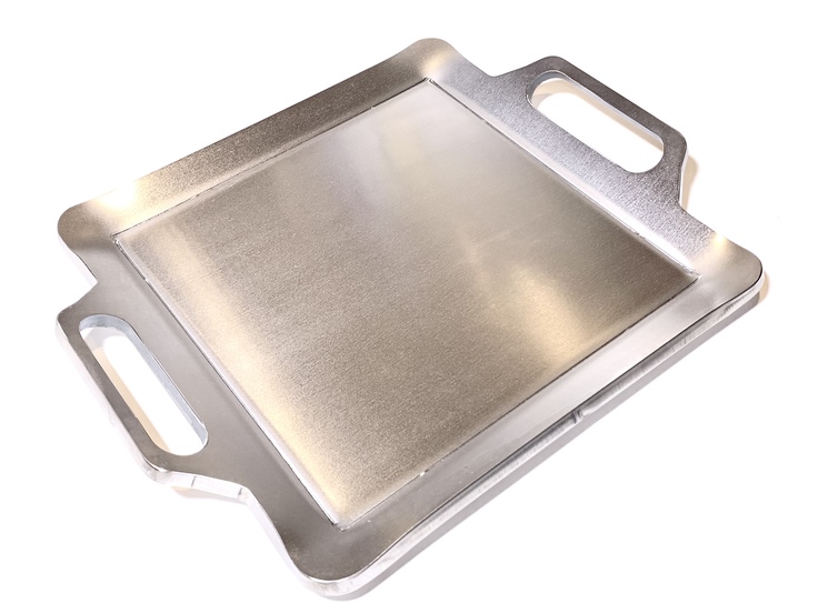 鉄板の大きさは【305㎜×305㎜ ※持ち手部分含まず】です。これは、ご家庭のガスコンロにあう大きさなんです。因みにIHコンロにも対応しております。 また、四方が曲げ加工になっており使い方の幅がグーンと広がります。(※この曲げの技術が職人ワザ!!) アウトドアで使うも良し、ご家庭で使うも良し、万能な大きさには理由があったんですね。 ※利用できないIHコンロもあります。