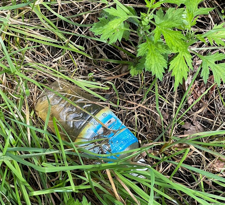 尿入りペットボトルの不法投棄のことです。都心では見かけることのない特殊なもの。