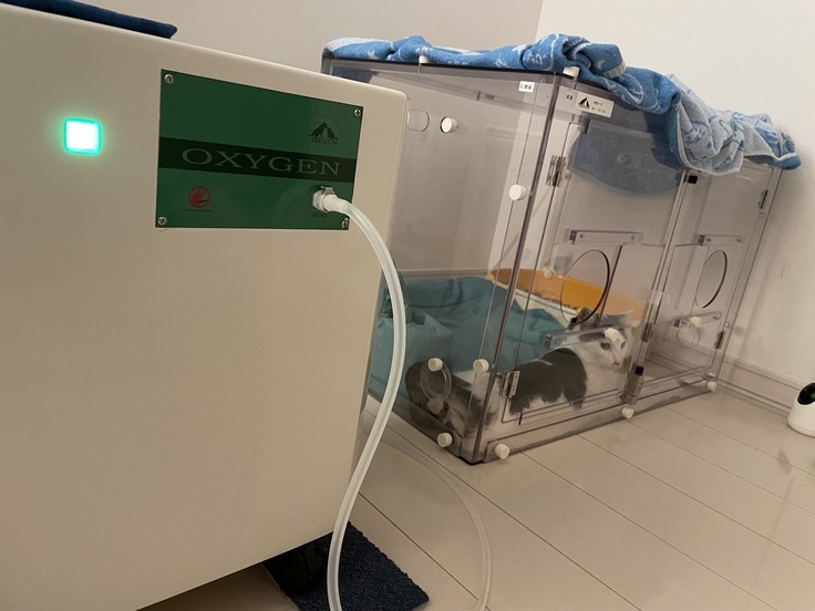 FIPの影響か貧血がひどく、かかりつけの先生から「家では酸素室で過ごすように」と言われていたため、協力病院の帰りに酸素室をレンタルしてきました。