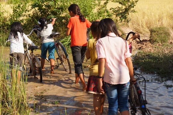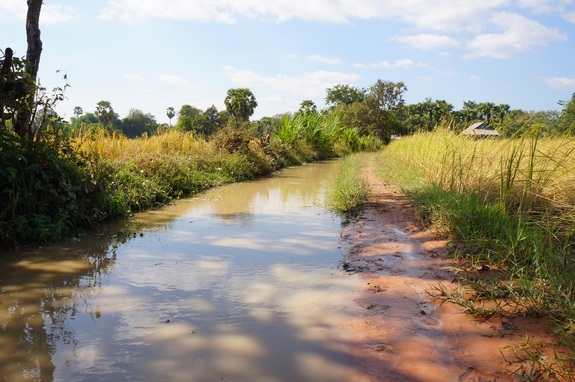 カンボジアの日本語学校付近の、雨季になると浸水してしまう道を