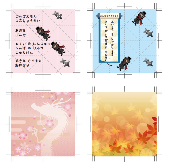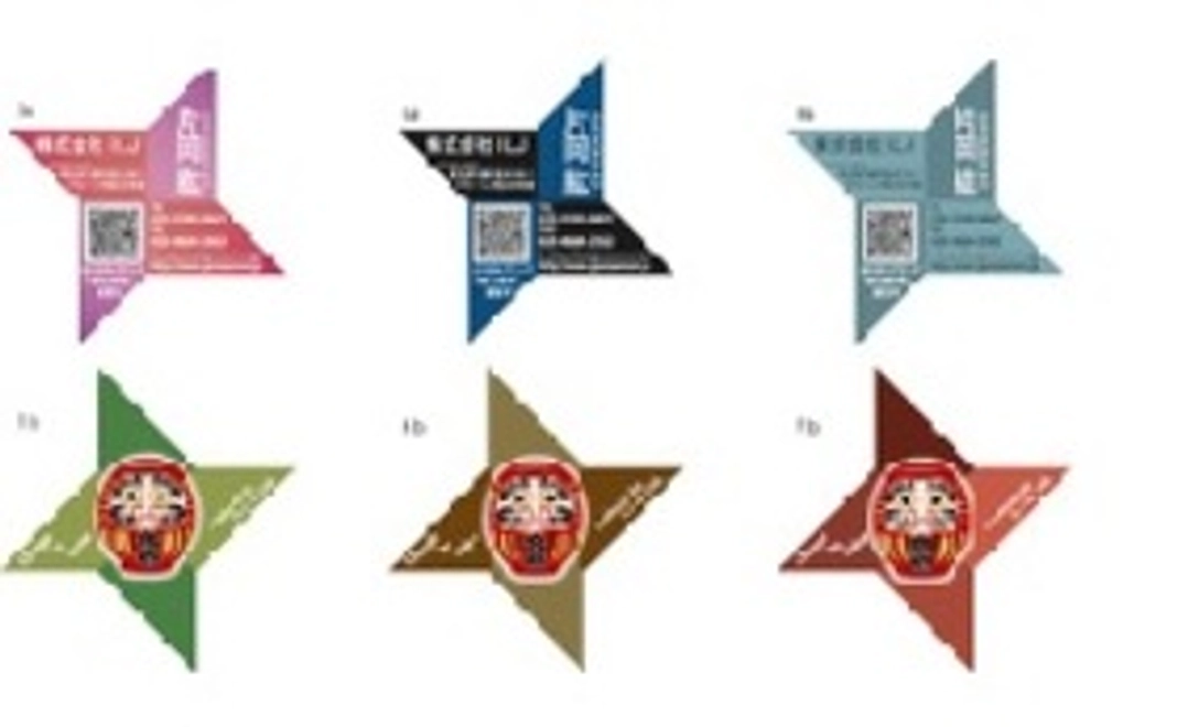 ※名前、住所、ダルマは好きな文字やイラスト・写真に変更可能でござる。手裏剣に折でござるから、写真よりもイラストがはっきり見えてお勧めでござる。