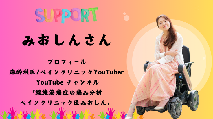 医師であり、YouTuberでもあり、線維筋痛症・慢性疲労症候群患者当事者であるみおしんさん。