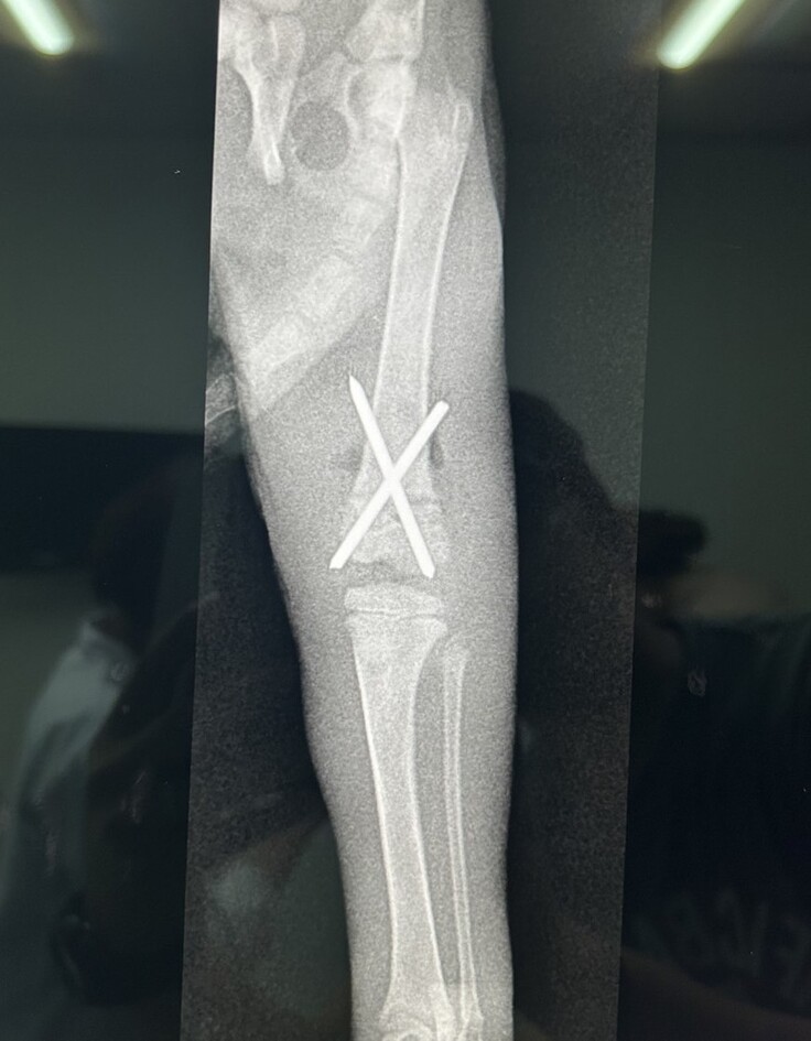 ↓10時に病院到着、骨も問題無しとのことで予定通り抜ピン手術を行います。